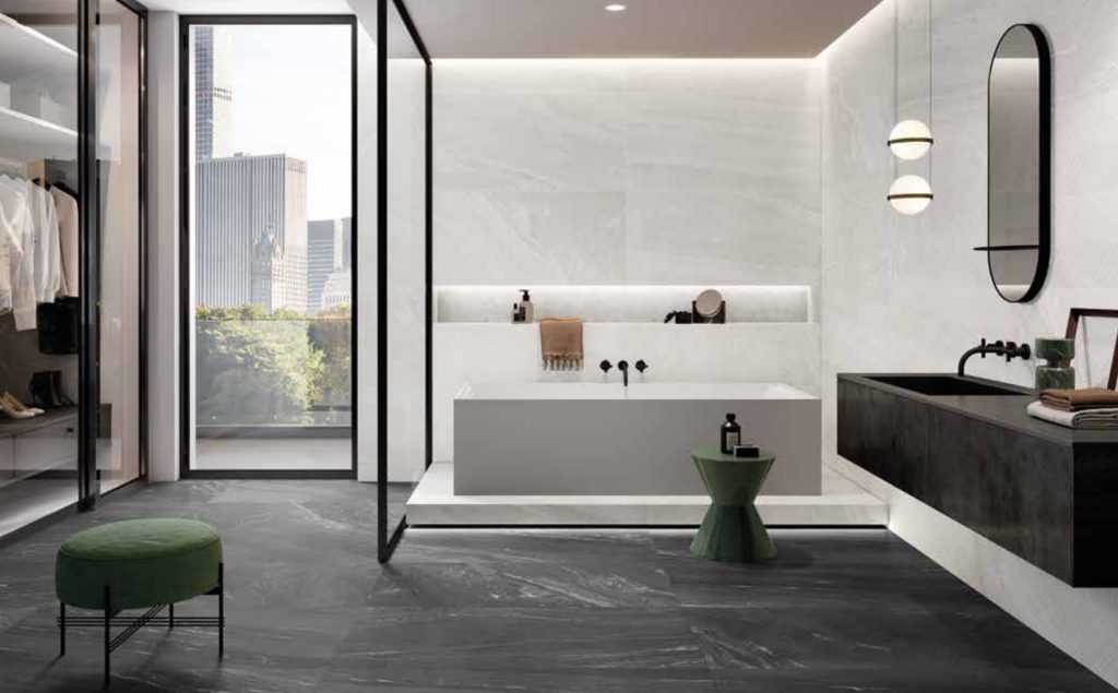 Porcelain tile: Fjord (stone look).
