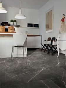 Porcelain tile: 12″ x 24″ available in 2 colors and 3 finishes – Ghost Marble and Pantheon Marble – Matte, Slate-Hammered, and Polished.
